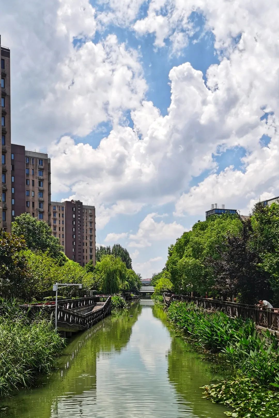 连日来,烈日高温持续,蓝天白云相伴,给全长仅约600米的南渔浦“美颜增色”,让其尽显水清岸绿景美的好风光。