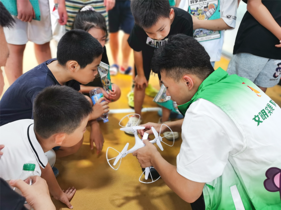 8月20日,由长宁区科学技术协会、上海市科普事业中心、北新泾街道办事处组织的“无人机任务飞行赛”培训活动在洛克公园北新泾馆举办,70余位青少年学习操控无人机,进行任务飞行竞技。
