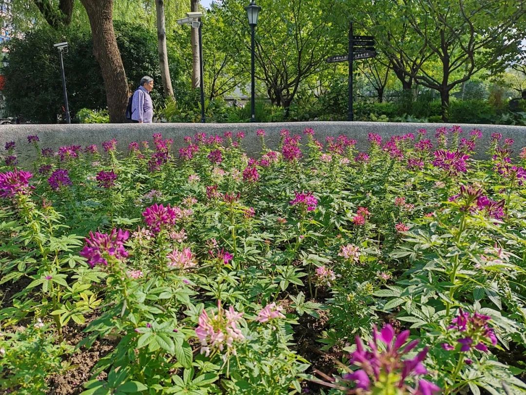 日前,在中山公园万航渡路一侧的种子池内,一片绚烂的醉蝶花悄然绽放。这些俏皮可爱的花朵也为历史悠久的中山公园增添了几分浪漫与梦幻。