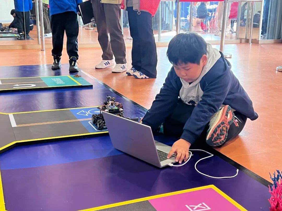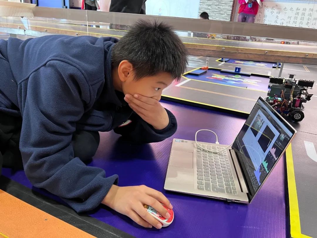 在少科站和学校带队老师的共同辅导下,适存小学的小队员们投入近5个月的备赛时间,充分利用课余时间钻研视觉技术理论知识,反复调试机器人代码,精准校准传感器。比赛现场,小队员们沉着应战、忙中有序,尽快熟悉场地变化的同时,也争分夺秒地根据现场情况不断调试机器。
