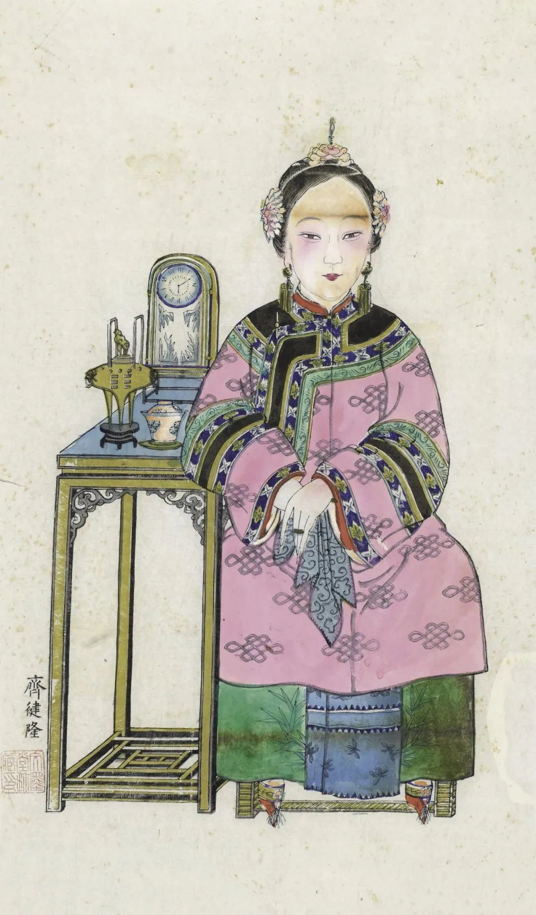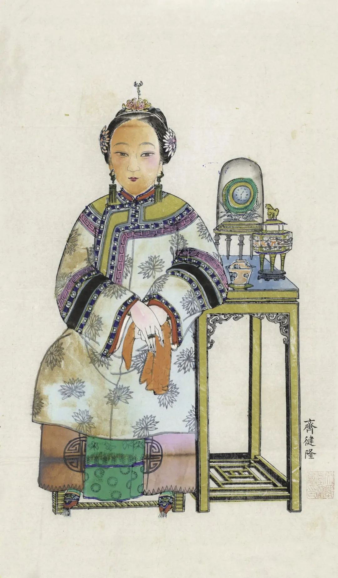 《仕女图》清代时期 天津杨柳青齐建隆画店 套色彩绘