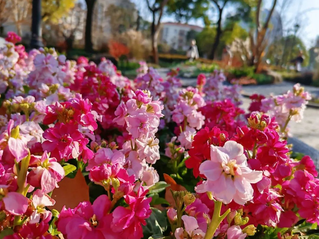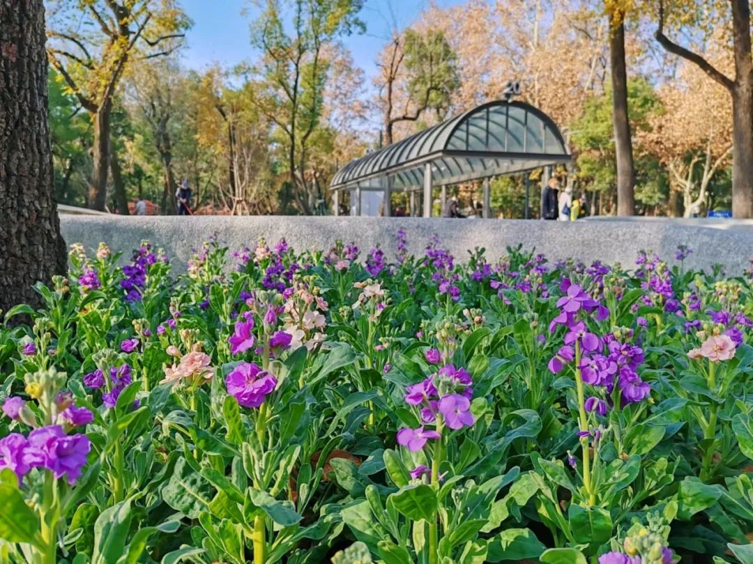 喜迎新年,中山公园种子池又上新了!不仅几处花坛都种上了清新可爱的紫罗兰,还在一旁的花坛处点缀了年宵花——北美冬青,让走进公园的市民游客在欣赏美景的同时,也能感受到浓浓的节日气息。
