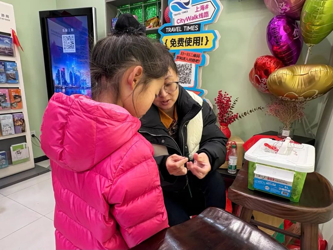 来中山公园锻炼的李女士被编好的中国结吸引,也走进长宁区旅游咨询服务中心,专注地跟着手工艺人学习。“我一直对中国结很感兴趣,今天有机会亲自学习编织,感觉非常有意义。这个中国结不仅是一份精美的艺术品,更是一份承载着祝福和好运的礼物。我打算把它送给我的朋友,希望她新的一年也能福气满满。”李女士说。