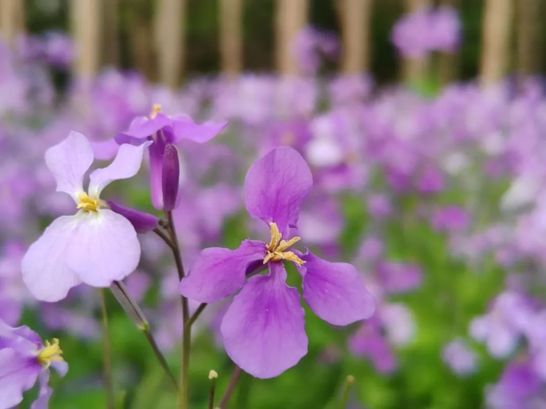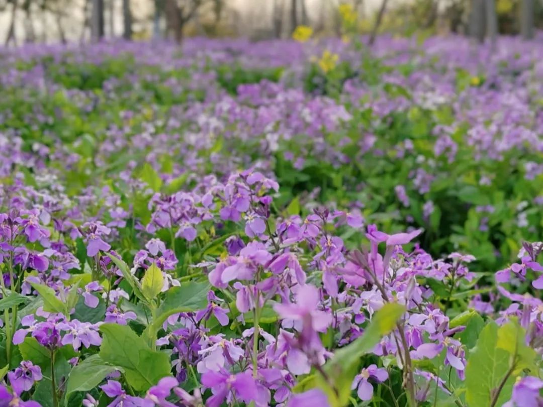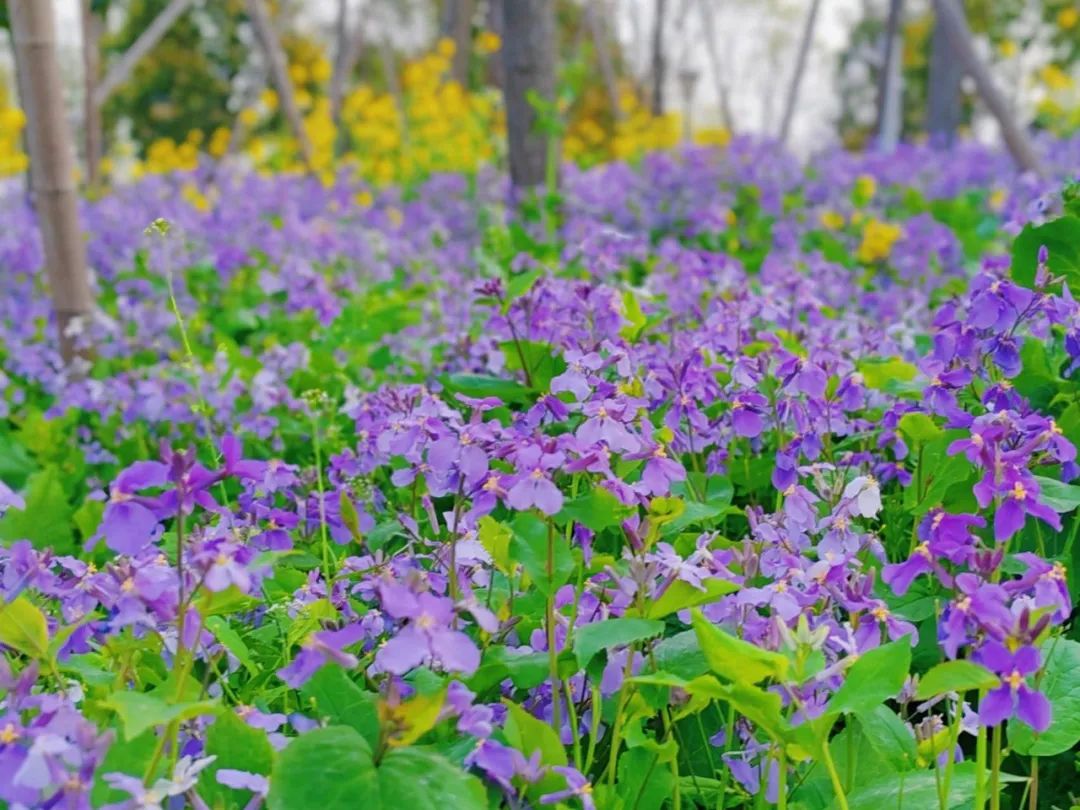 在外环生态绿道,沿着跑道的林荫之下,大片二月兰开得正艳。阳光穿过枝叶的缝隙,温柔地洒在花瓣上,每一朵小花都闪烁着微光。微风轻拂,它们如同蹒跚学步的孩童,晃动着小小的脑袋,满是天真与快乐,生机勃勃。这片紫色小花交织成的地毯,不仅为绿道增添了诗意,更为散步、骑行的市民打造了一条梦幻的紫色风景线,成为人们春日出行的绝佳背景板。
