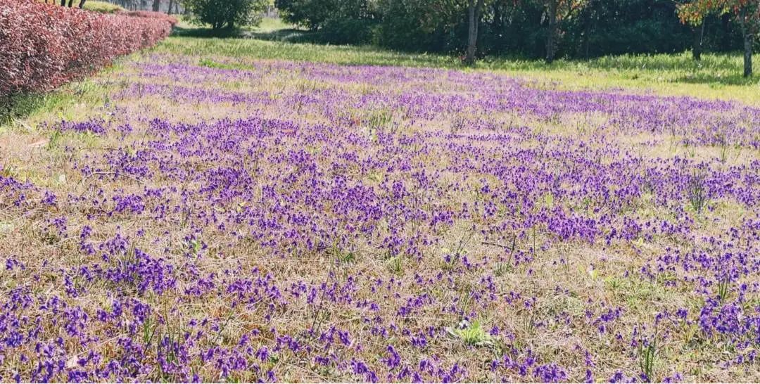 在绿道泉口路附近,记者发现了另一番美景——紫花地丁紧贴地面生长,远看就像大地披上了一层轻薄的紫色纱衣,如梦似幻,让人不禁沉醉其中。这种低调却不失美丽的小花,以独特的姿态诠释着春天的温柔。