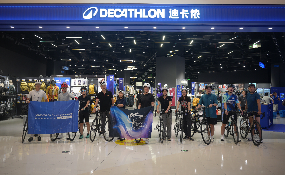 晚上六点,迪卡侬门口已是一片热闹景象。十余名骑行者装备齐全。活动开始前,迪卡侬工作人员为参与者提供了必要的安全检查和热身指导,确保每个人都能以最佳状态投入骑行。