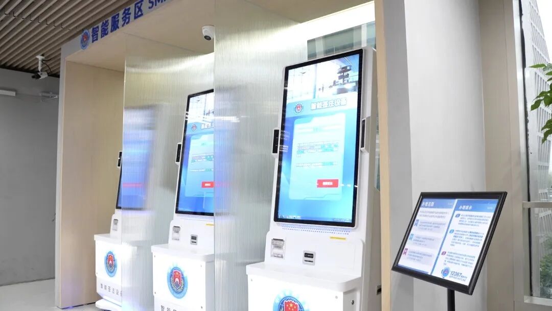 上午,记者在红宝石路188号B座三楼的长宁公安分局红宝石路出入境接待大厅看到,3台24小时智能签注设备已经入驻。