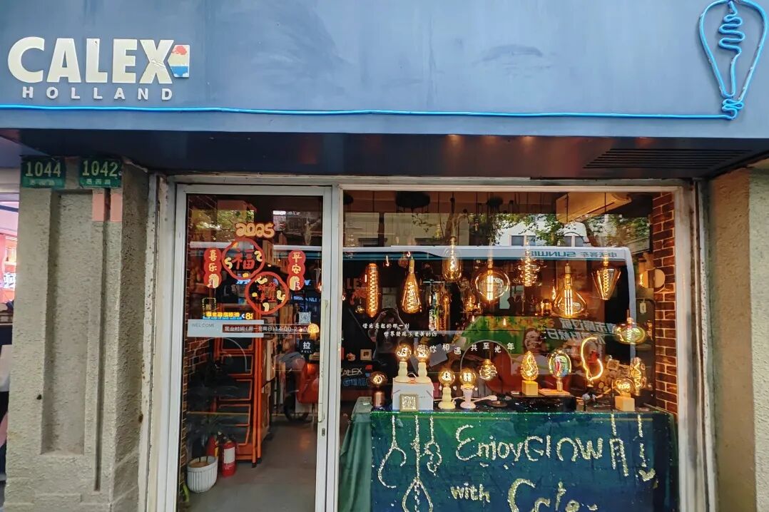 从电台出来继续前行,各类现代商铺鳞次栉比,店铺拥有着独特审美与实用价值,逛起来乐趣十足:首先遇见的是“GENZERO”,店内有上百款原创设计的帽子;走到“愚园百货公司”,可打卡兰蔻快闪活动,体验一场肌肤修护的探索之旅;亮眼的“CALEX 灯饰店”也别错过,玻璃橱窗后陈列的各类灯饰创意感拉满,让人忍不住驻足欣赏。