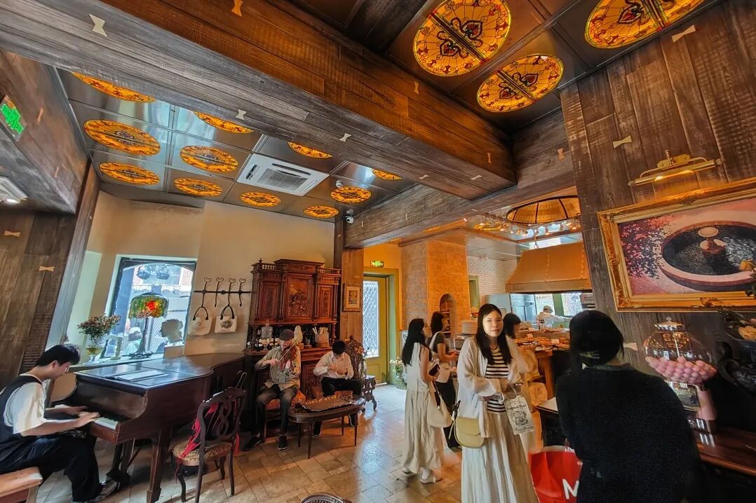 若你选择上午出发,可以悠闲地漫步,欣赏梧桐掩映下的愚园路。建议从江苏路地铁站4号口下,一出站就能发现好几家宝藏美食店:想尝点甜蜜,可以去“面包咖啡好天气”挑几款精致甜品;想吃点咸鲜,“董记庐春面馆”的雪菜肉丝面是不错的选择。不远处的马路对面,还有“小杨生煎”“蒸久膳包子铺”,皮薄馅足的生煎、热气腾腾的包子,足够让你吃得满足又营养。