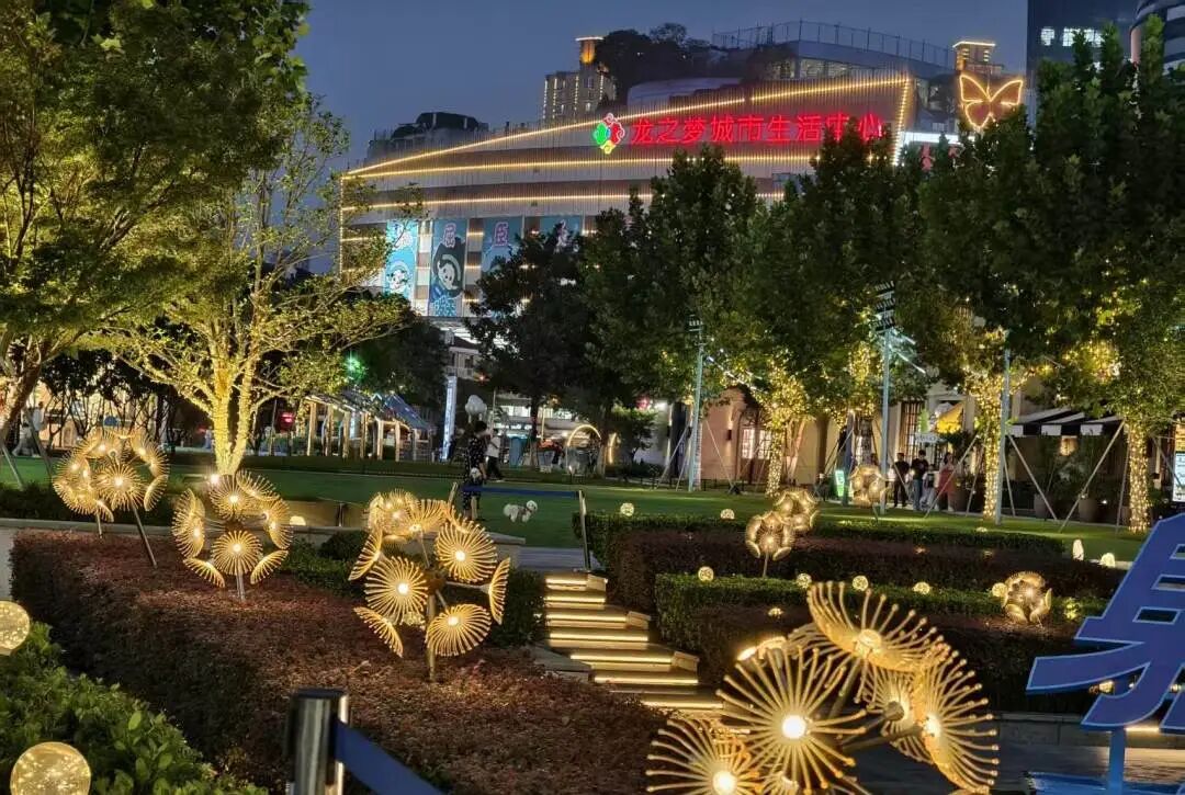 华灯初上,商圈楼宇群率先开启“光影秀场”,为城市夜空勾勒出层次分明的天际线。龙之梦城市生活中心的动态光影幕墙尤为吸睛,流转的色彩与商业综合体的热闹氛围相呼应,时而明快跳跃,时而渐变柔和,成为展现商圈活力的视觉符号,引得过往行人纷纷驻足拍照。