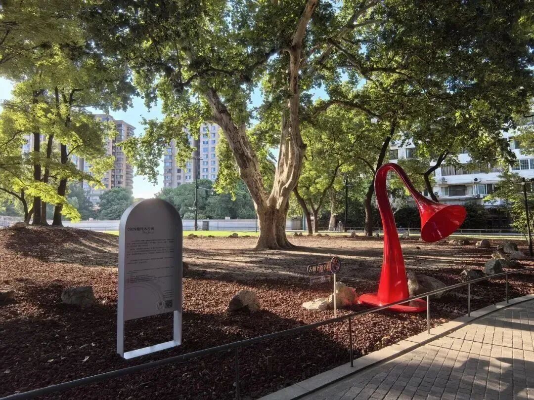 除此之外,这里还有着华东地区树身最高、树干最粗、树冠最大的悬铃木。漫步公园树下、坐在绿地草坪间,与伙伴们畅聊二三事,好不惬意!公园深处还有一个儿童游乐场,对于亲子家庭也是一个好去处。