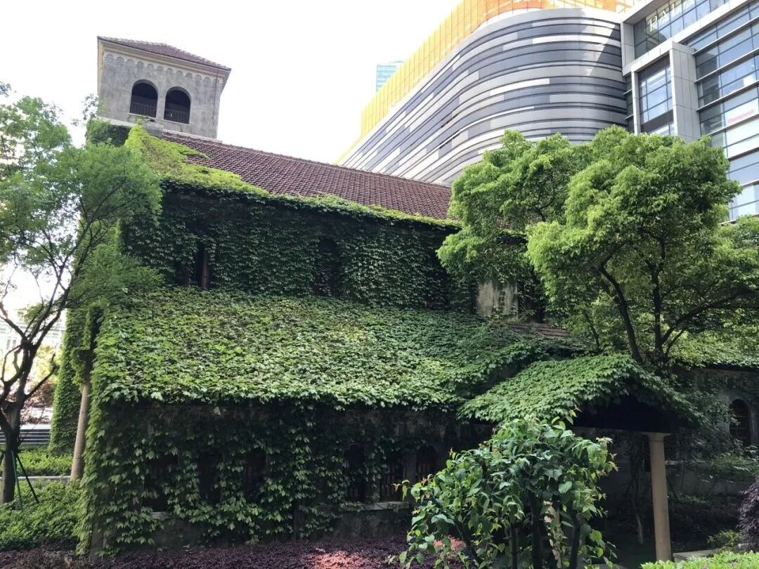 当然,这里可不只是商场,它还巧妙地“生长”在圣玛利亚女中的旧址上。这所女子中学创办于1881年,与圣约翰大学齐名,张爱玲曾在此就读。长宁来福士项目启动后,对原址内的历史建筑精心修复,保留了“四堂一楼”(思卜堂、格致堂、膳堂、思孙堂、钟楼)以及1000平方米的大草坪。每一帧画面都仿佛向路过的人们诉说着圣玛利亚女校的历史过往。
