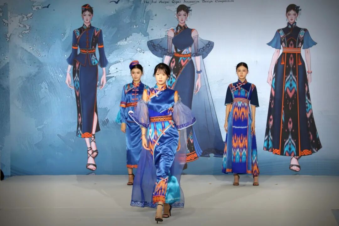 据了解,本届大赛参赛范围从长三角地区拓展至全国,还有美国、意大利、摩洛哥等国际高校的博士生、留学生参与,作品充分保留了海派旗袍“海纳百川”的文化特质,还通过融入艾德莱斯元素注入丝路文化基因,使传统服饰从舞台展示向日常生活场景渗透。