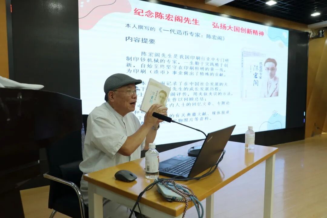 在虹桥中学,活动邀请中国美术家协会会员陈发奎以《大国制造的故事》为主题,为学校师生讲述其父亲——中国第一代造币专家陈宏阁先生的励志人生。“作为我国印刷行业专门研制印钞机械的专家,陈宏阁一生勤于实践、精于创新,自始至终坚守在印刷科研的第一线,为中国的印刷和造币事业作出了特殊的贡献。”讲座中,陈发奎介绍,陈宏阁一生坚持实业救国“制器之器”,坚持独立自主科技兴国,在其一生中有许多重大发明创造:他合作创造发明了第一代中文照相排字机,自己设计制造了三色平板胶印机等。陈发奎不时向学生提问,引发大家思考,并鼓励青少年们把握青春,奋发图强。