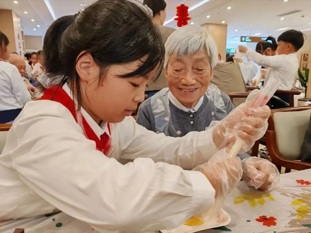 在重阳节即将到来之际,10月27日,长宁区天山第一小学“小蚂蚁”志愿服务队的少先队员们走进上海人寿堂颐养院,以红歌传唱、经典诵读、手作蛋糕等形式,为老人们带去节日的祝福与真挚的问候,用实际行动诠释尊老敬老的中华美德。