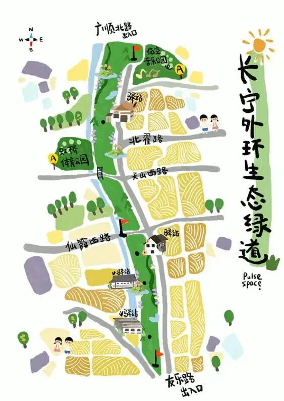 漫游贴士:适合周末亲子游,可自带帐篷在大草坪露营;临近苏州河步道,逛完公园可沿河边散步;周边有临空经济园区,午餐可选择园区内的餐厅。