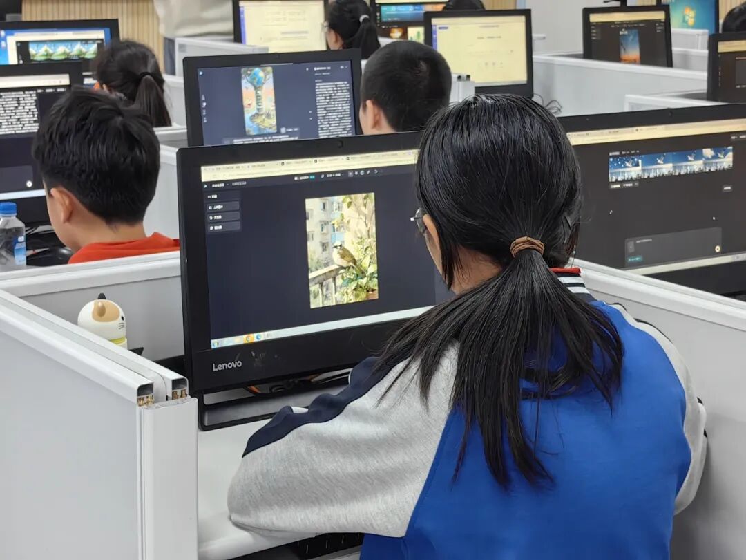 在接下来的项目课程中,孩子们在老师的指导下,开始学习使用AI制作保护鸟类的主题海报。据介绍,这一AIGC创意海报生成课面向青少年,旨在培养青少年的创意思维与设计能力,通过学习AIGC(人工智能生成内容)工具与设计技巧,激发青少年对数字艺术的兴趣。孩子们在此过程中,学会了利用人工智能生成工具进行创作主题海报,体验从灵感构思到成品输出的完整设计流程。