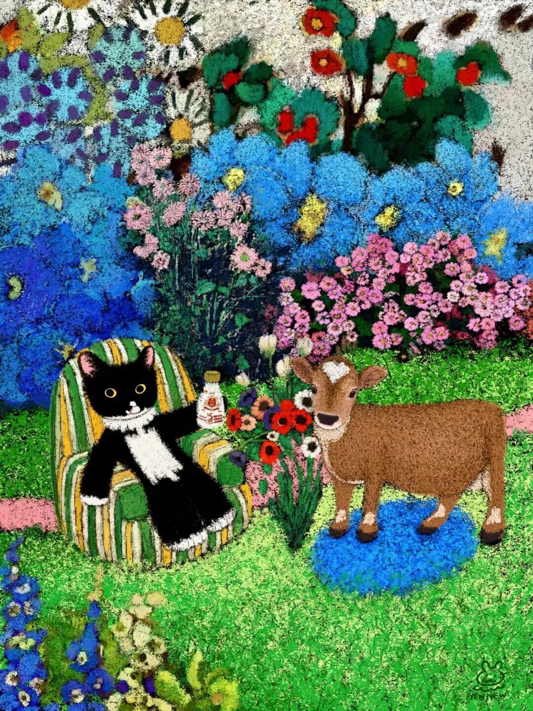 林菁菁分享,自2019年定居上海,她结交了许多新朋友,持续深耕创作的同时,也爱上了这座城市。2023年,她的创作与上海老品牌“光明”跨界联动,让她深感实现了“双向奔赴”。在由上海青年艺术博览会和光明致优合作的“青年艺术家培育计划”首场线下展览“2023新锐艺术家跨界特展”中,她设计的《MEOW#仿佛在梦里》被实际应用在光明致优牛奶包装中,为观展市民带去限定惊喜的经验,给她留下深刻印象。