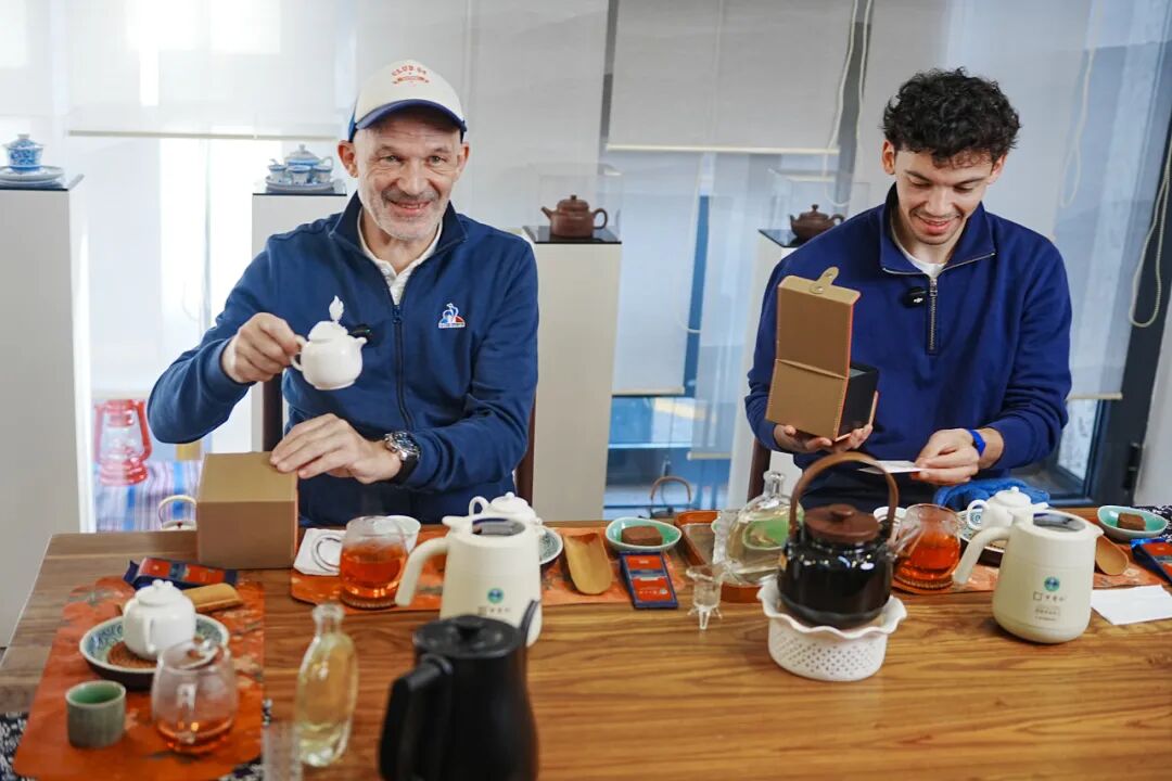 法国男子壁球运动员、赛事五号种子Victor Crouin与父亲一同抵达。茶艺师现场演示和讲解,带来了来自福建的红茶与白茶,以及来自云南的普洱茶。初次接触中国茶文化的Victor在红茶刚泡好时便举杯欲饮,茶艺师赶快提醒他道“慢慢喝”。他也由此提出疑问,“中文怎么说‘干杯’?”“为什么要用小小的杯子?”经过交流,他也逐渐了解到了中国茶的慢文化和社交属性。