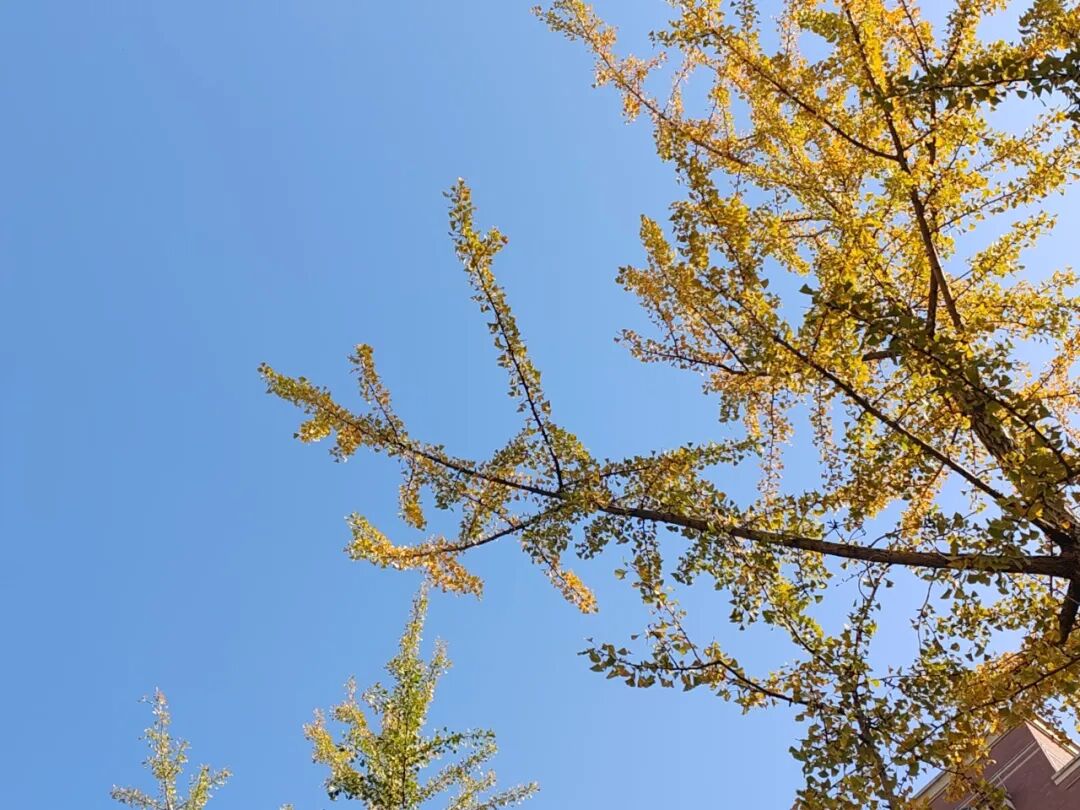 漫步在这条著名的“银杏大道”,金黄从叶梢开始蔓延,如同被大自然这位神奇的画师精心晕染。深绿、浅黄、金黄、亮黄,层层过渡的色彩,明亮而自然,在阳光的轻抚下,闪烁着迷人的光泽。