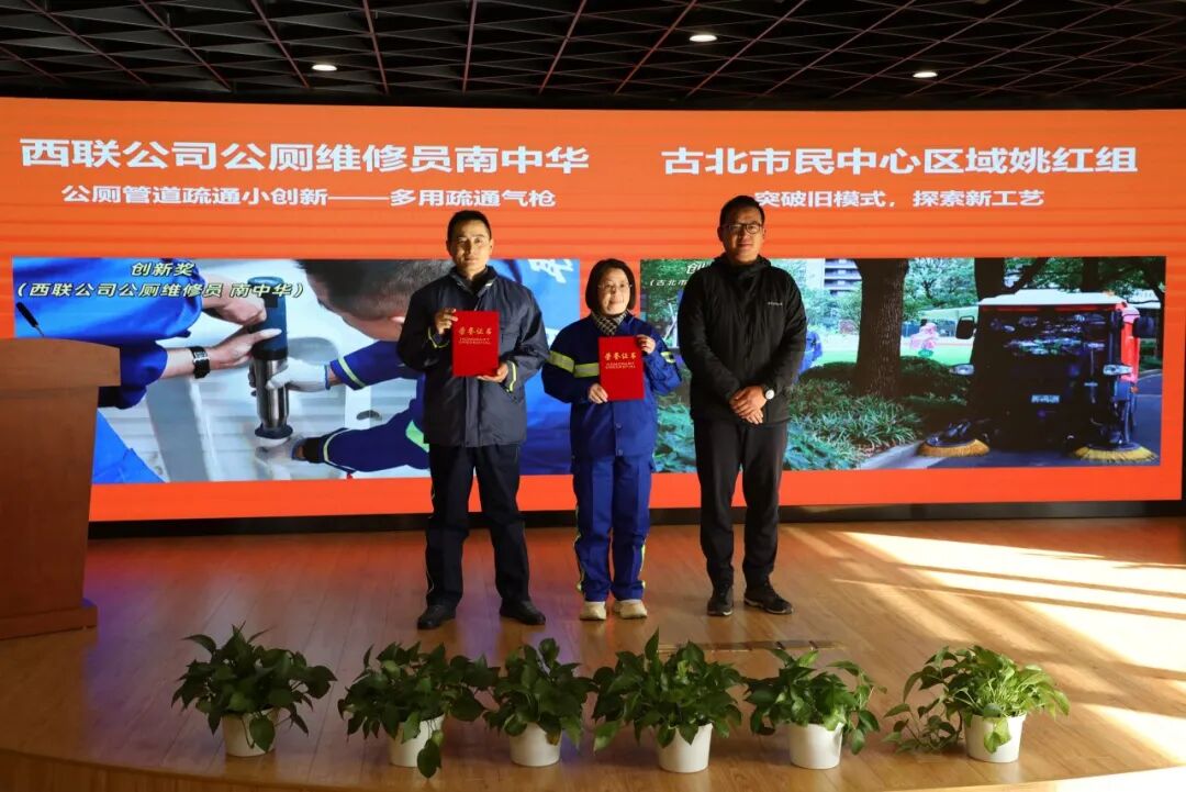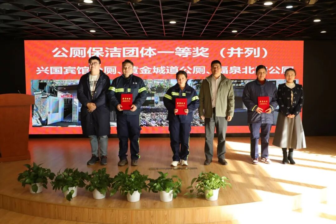 活动现场回顾了为期两个月的赛事情况,并为获奖职工颁发“公厕保洁团体奖”“创新奖”和“道路保洁团体奖”。