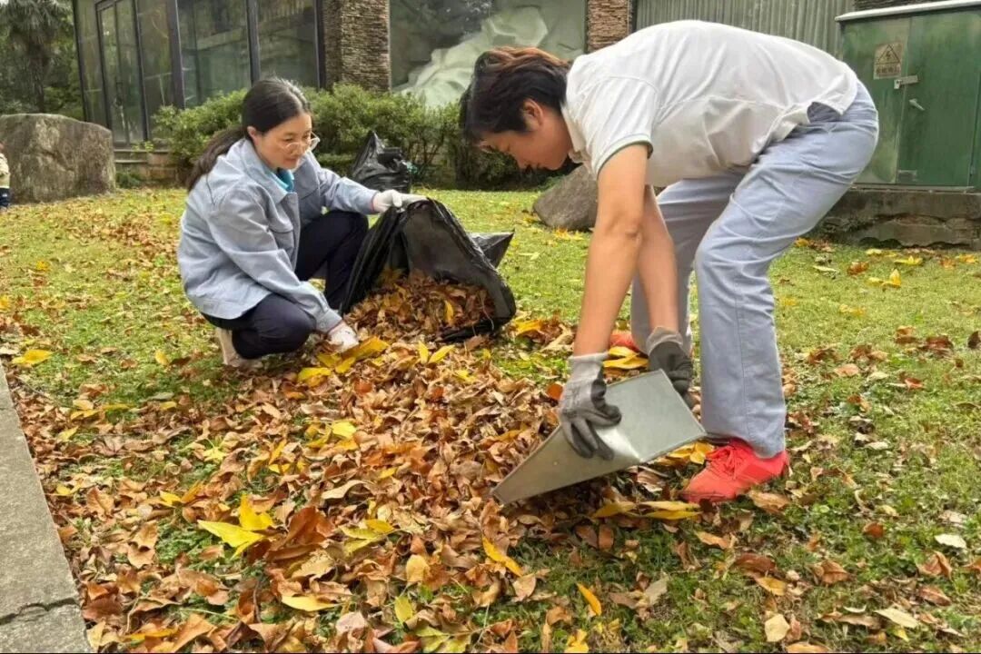 值得一提的是,这些秋叶和秋果不仅具有观赏价值,还是上海动物园打造丰容设施、增进园区生态平衡的好东西。饲养员们收集落叶,经消毒烘干后为动物铺设“秋季限定地毯”,既可提供自然声响与气味的感官刺激,模拟野外生态,同时还能调节展区温湿度、保护龟甲,是集丰容与保护于一体的天然垫料。乡土植物及动物食源植物,则通过为上海本土动物提供秋冬食粮,促进了园区生态平衡与自然病虫害防治。