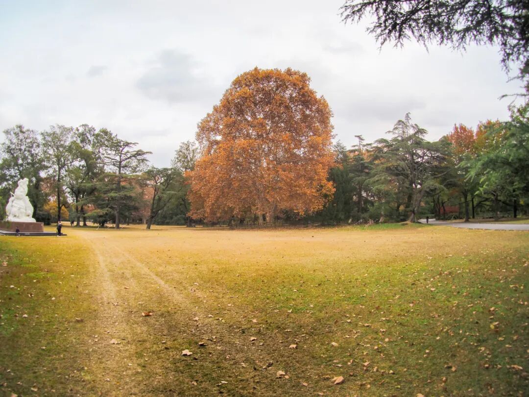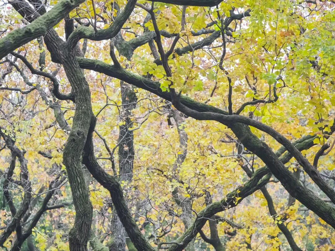 悬铃木或者说我们常说的法国梧桐遍布整座城市,动物园里也不会少。上海动物园里的悬铃木有一些年份了,树干高高地伸向天空,宽大的树冠遮天蔽日,常见亦不损其带给人的惊奇。在科学教育馆草坪上,三株年纪排得上号的悬铃木,其树冠随着岁月的流逝渐渐靠拢,构成三树合一的奇特景观,在落叶季尤其壮观。还有大草坪旁,有一条悬铃木组成的落叶大道,步入其中,让人不知“今夕何夕”。