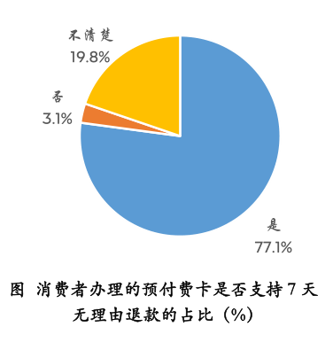 在本次针对长宁区游泳场馆的测评中,区消保委也聚焦游泳场馆的预付费消费模式开展了消费调查。调查显示,63.7%的消费者选择通过预付费方式办理游泳场馆预存卡,预付费消费在游泳行业中较为普遍。在合同签订环节,97.2%的消费者表示与游泳场馆签订了书面预付费合同或会员协议,有效明确了双方权利义务。在退款政策方面,96.4%的消费者清楚了解退款流程和相关要求,七成以上消费者表示所办理的预付费卡支持7天无理由退款,体现了消费者较高的知晓度,以及长宁区游泳场馆在保障消费者权益方面的积极态度。
