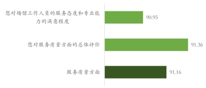本次调查围绕硬件设施、服务质量、预付费经营情况三大类指标展开。从结果看,硬件设施得分相对较低,为87.31分。消费者普遍期待更衣室设施进一步优化升级,推行无卡制、智能淋浴、更衣室干湿分离等配置。在安全保障方面,在游泳场馆基本配备救生人员、超过六成配备自动体外除颤仪(AED)的基础上,消费者希望救援设备更加普及。同时,调查也显示,大多数消费者对游泳场馆的水质、环境卫生和通风情况给予了认可,说明场馆在基础环境营造方面已取得一定成效。