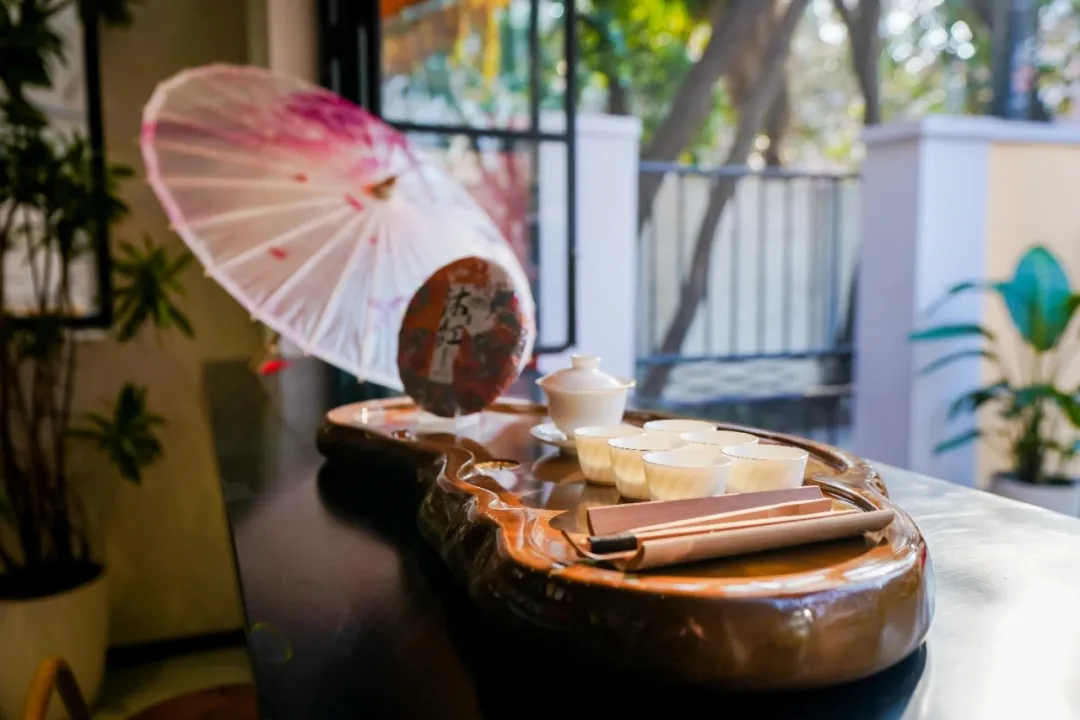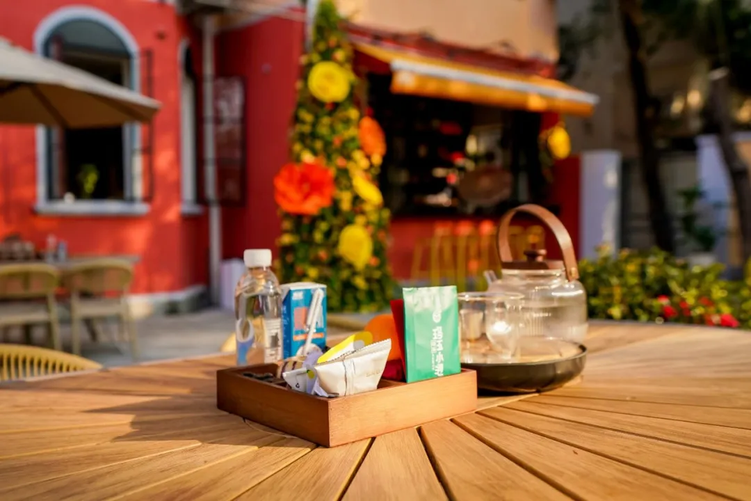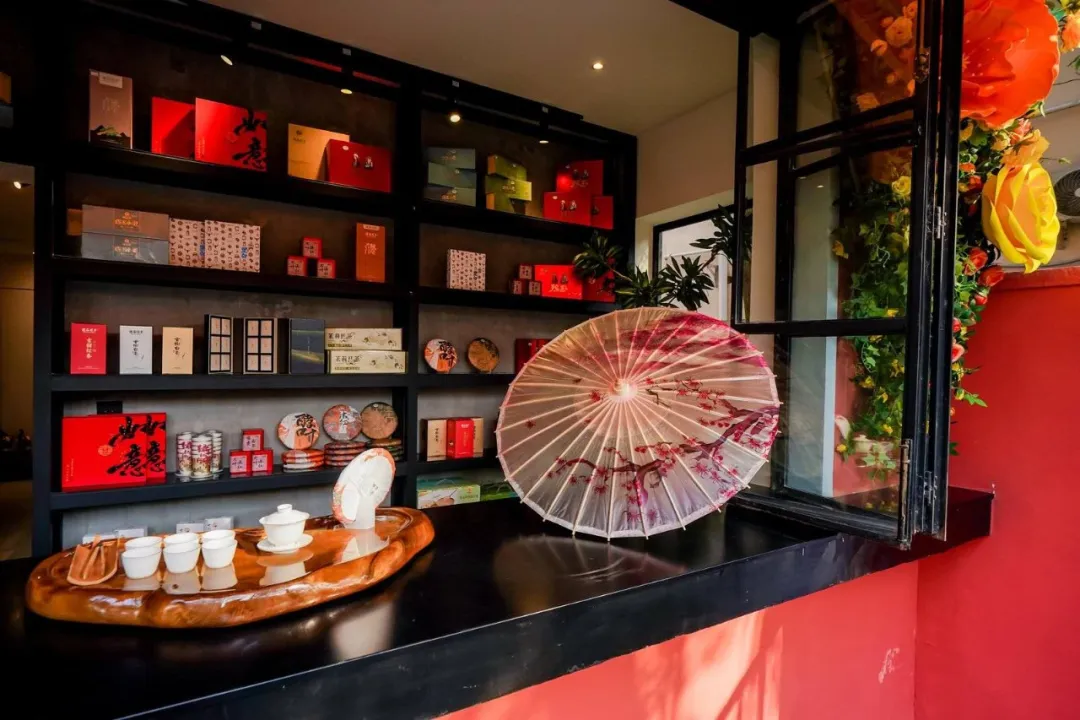 与文化延展区相连的非遗体验区,是场景创新的重要部分。这里陈列着云南红河三县非遗海报与“大美青海、秘境果洛”摄影作品,并可开展非遗手作、团队建设等活动。由老建筑改造而成的品茶角,陈设红河精品茶叶,推窗可见愚园路街景,带来味觉与视觉的双重享受。室外花园可灵活转化为茶室、围炉煮茶等社交场景,黄色玫瑰花幕墙寓意东西部协作的幸福情谊,成为又一热门打卡点。