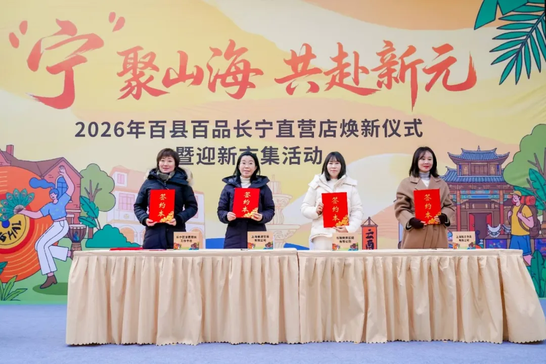 1月21日上午,“‘宁’聚山海 共赴新元——2026年百县百品长宁直营店焕新仪式暨迎新市集”活动在愚园路举办。坐落于愚园路1086号的长宁百县百品直营店同步焕新启幕。打破传统帮扶门店单一展销模式,直营店升级为集展示销售、文化体验、互动交流于一体的复合空间,让乡村好物与百年老街的文艺底蕴深度交融,以“特色产品、文化体验、互动空间”三位一体的创新实践,推动消费帮扶向品质化、场景化、可持续化迈进,为乡村振兴注入都市动能。