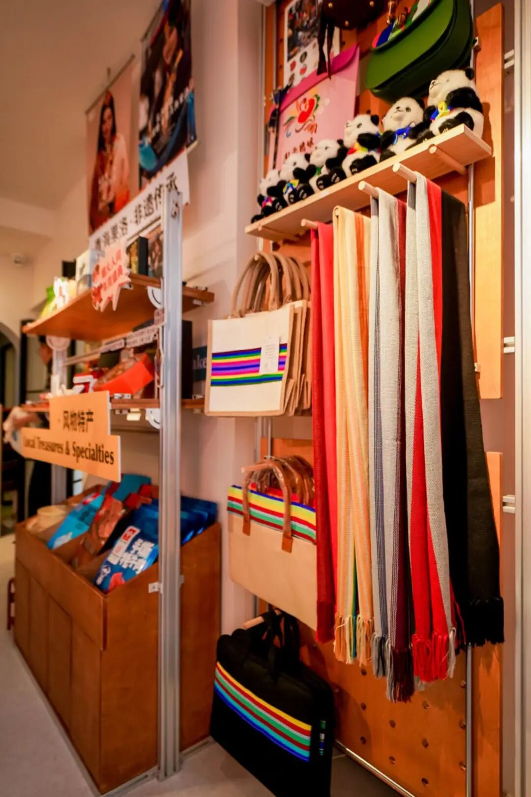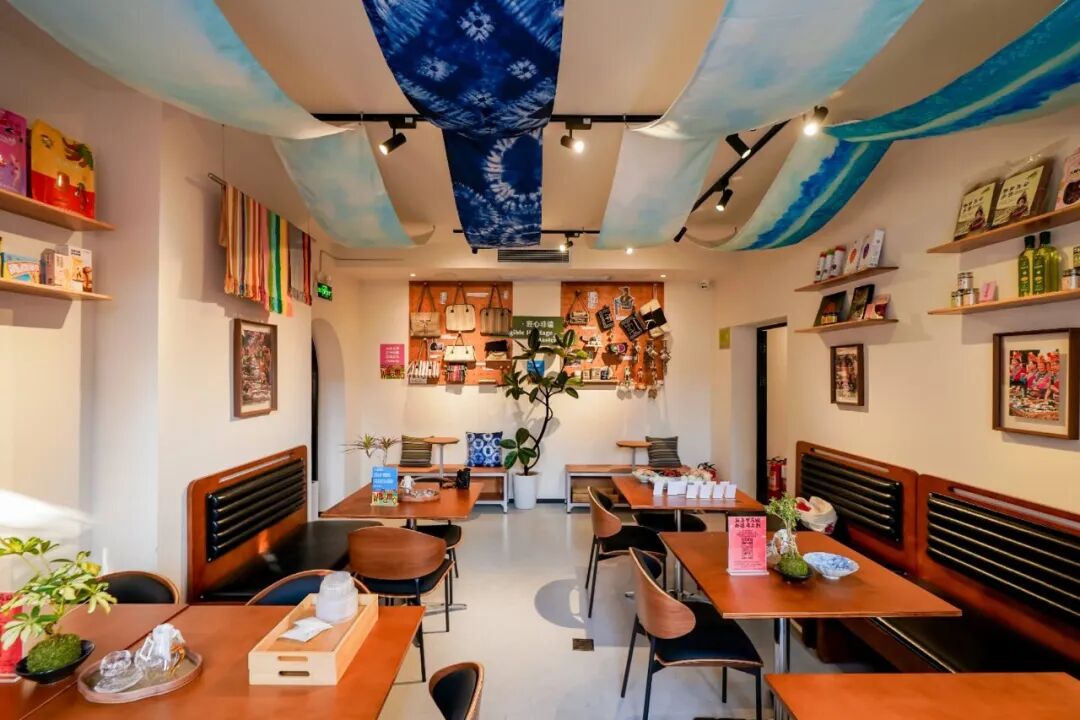 文化延展区巧妙融合愚园路海派艺术基调,借鉴云南哈尼长街宴特色,打造“舌尖上的百县百品”体验空间。红河红米粥配菌菇酱、青稞蛋卷搭咖啡、宣威火腿三明治等轻餐饮,均以对口帮扶地区食材制作,践行“体验即购物”理念。顾客可现场品尝地道风味,也可随手将心仪产品带回家,让美味与助农心意一同延续。墙面图文并茂的文化介绍,讲述着每款产品背后的风土人情,让消费更具温度。