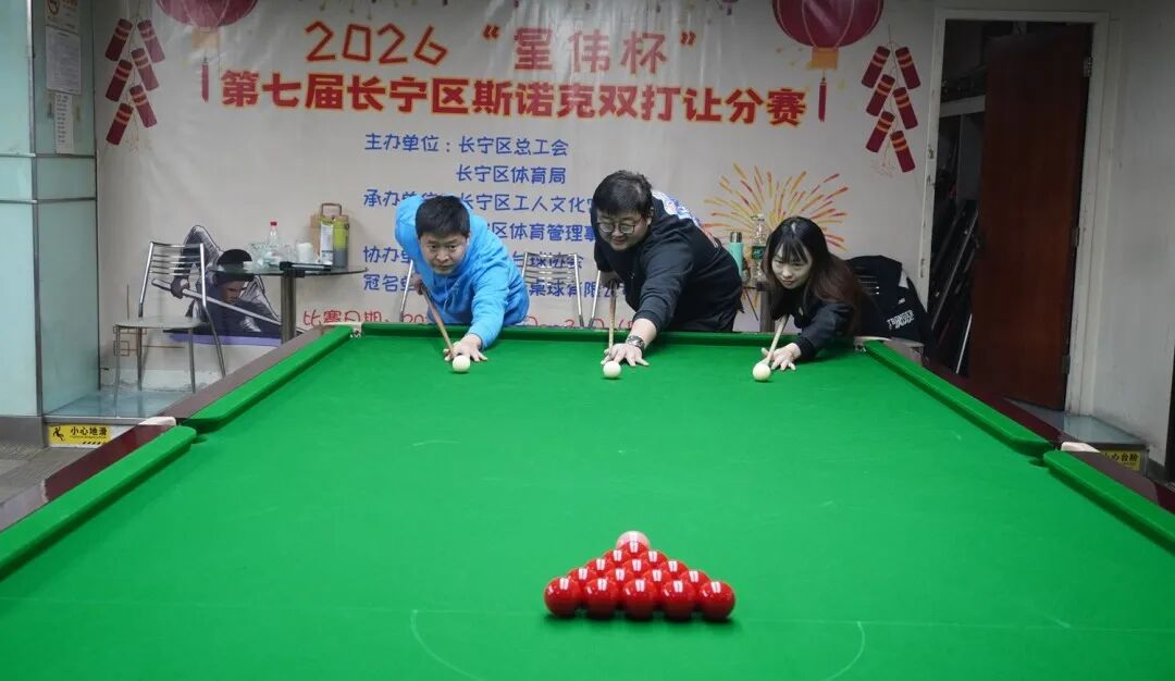 近日,2026“星伟杯”第七届长宁区斯诺克双打让分赛在区工人文化宫落幕,由64名长宁职工组成的32支队伍通过为期三天的比赛,不仅展现了斯诺克运动的魅力,更是以文体活动为纽带,积极推动长宁职工文化建设。