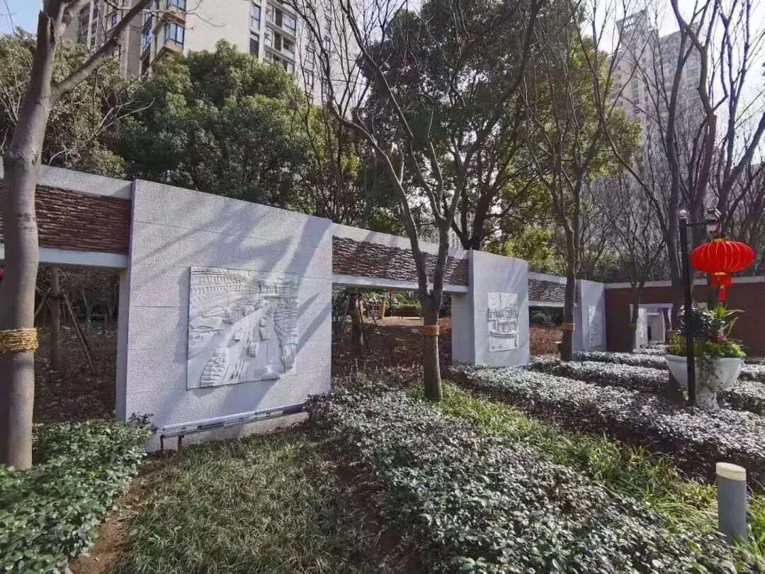 园内大道两旁还有特色浮雕墙,仔细端详,会发现图案不一,既有趣味,又包含着历史文化,比如“白渡桥”“运输船”“船上婚礼”等,刻画细腻,述说着上海的历史和故事。