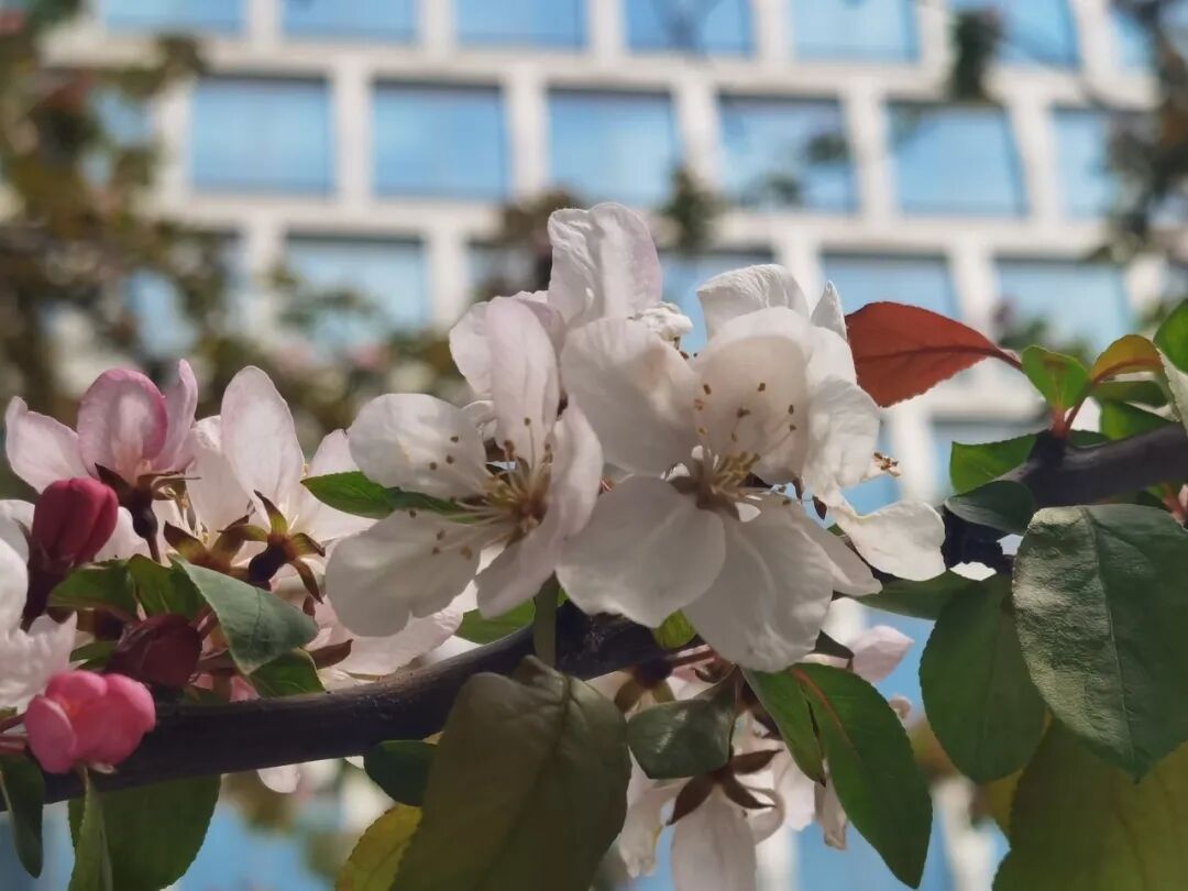 玛瑙路、延安西路(娄山关路到古北路段)的行道树就是它。品系不同,花色各异,粉的白的红的凑在一起,视觉效果反而有点意想不到。到了秋冬,果实挂满枝头,宿存不落,成了鸟儿和小动物的过冬口粮。