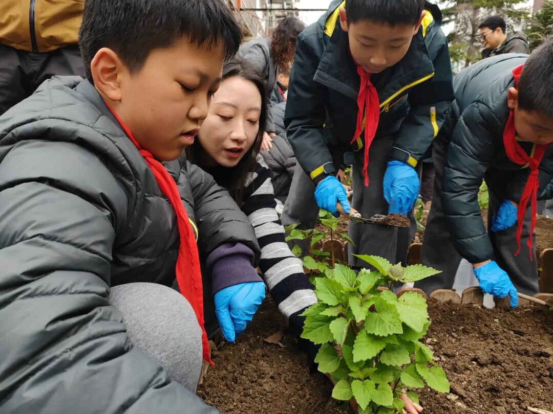 3月23日,随着两棵银杏树种下,长宁区安顺路小学“安顺百草园”也伴随着师生们的欢声笑语正式“萌芽”。