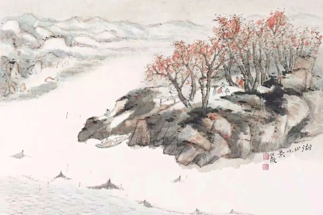 展出的一幅幅山水小品,皆是于学波对家乡滁州女山湖一带风光的艺术再现,丘陵坡坂、溪桥渔舍跃然纸上,笔墨间兼具古趣与清疏淡远的意境。这些作品不仅勾勒出女山湖的自然景致,还蕴藏着于学波对故土的深情回望,是明光文化基因与中华优秀传统文化的鲜活表达,也为观众打开了直观“阅读”明光、理解江淮文化与中华传统山水文化的窗口。