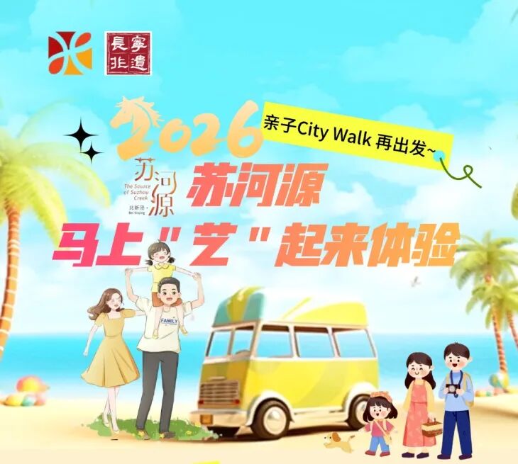 活动简介:春风送暖,马上添趣。当苏河源的文化底蕴遇上城市微旅行的浪漫,一场集非遗体验、生态科普、亲子手工于一体的沉浸式Citywalk正式启动。紧扣马年传统文化主题,串联辖区优质文化生态阵地,专属亲子家庭的美好时光,由北新泾街道办事处和上海长宁文化艺术中心共同主办,依托苏河源文化IP打造沉浸式公共文化服务场景,让家长和孩子在漫步中感受非遗魅力,在协作中增进亲子感情,解锁家门口的文化与自然之美。