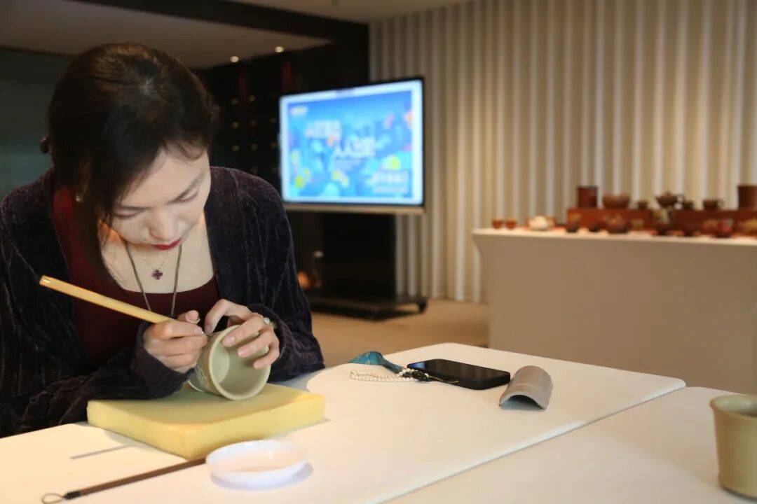 3月28日,由上海虹桥当代艺术馆主办的“城市美育日”重点活动——“陶铭心印”紫砂书法镌刻工作坊在苏州河畔的上海阿纳迪酒店举办。国家级非遗紫砂技艺走进都市疗愈秘境,以“文化+商业+旅游”的创新融合模式,为市民们带来一场身心放松与艺术创作相融的沉浸式美育体验。