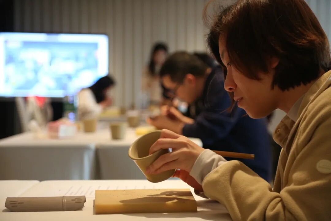 本次活动特邀宜兴紫砂国家级工艺美术师王依娇、国家级工艺美术员钱伟刚,联合上海虹桥当代艺术馆艺术干部张仕现场手把手指导。现场,20位市民围坐于紫砂素坯前,在120分钟的沉浸式体验中,静心落笔、以刀代笔,从书法起稿到运刀镌刻,一步步完成专属文人紫砂作品,指尖触感与刀笔韵律交织,尽显传统工艺之美。“平时工作节奏快,很少有机会静下心来做一件事。在这么舒服的疗愈空间里刻紫砂,既能感受非遗魅力,又能彻底放松,特别治愈。”参与市民陈女士说,从握刀姿势到线条把控,老师都耐心指导,完成作品时成就感满满。