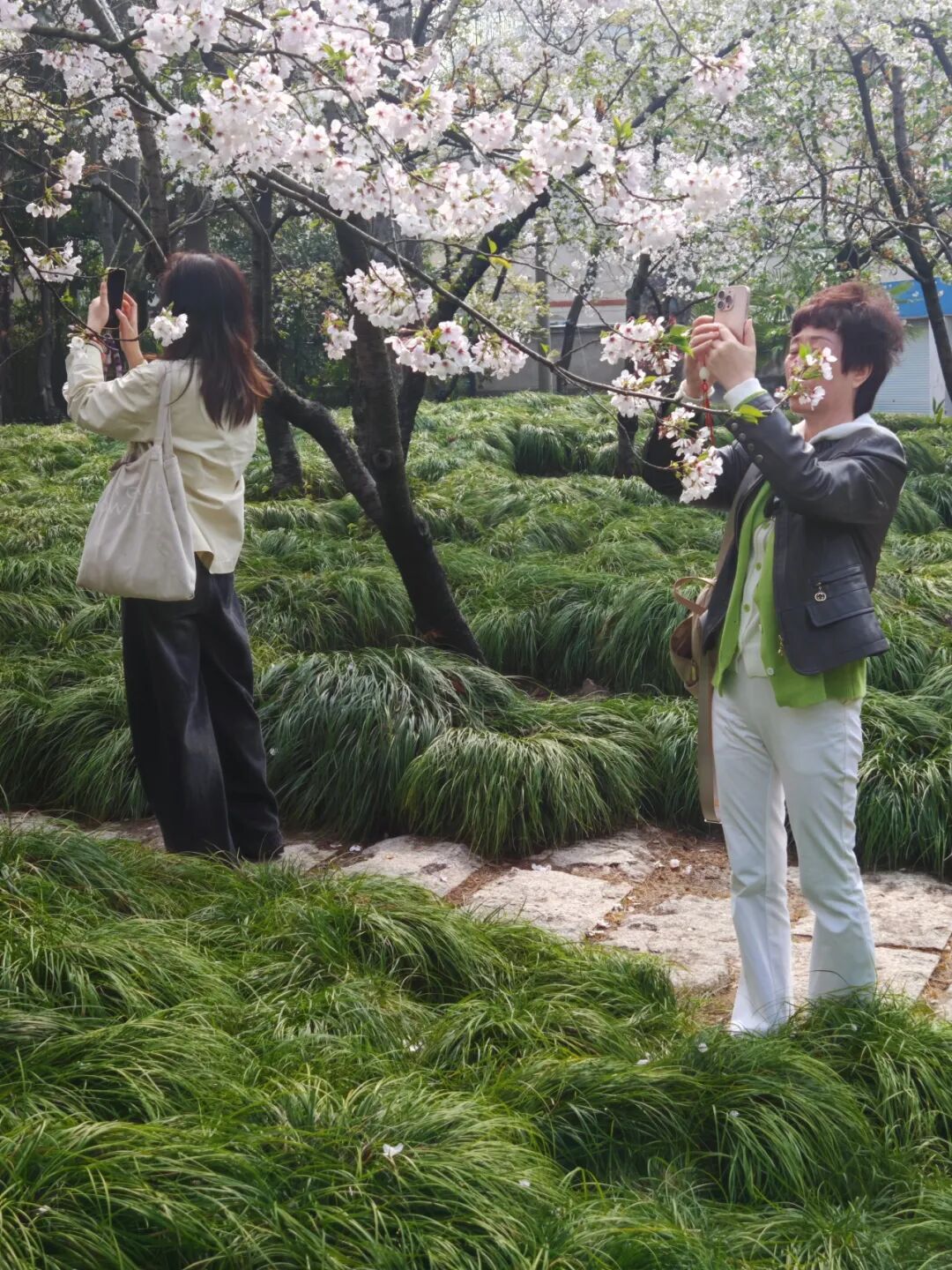 远望,一树繁花如粉白云霞浮于檐角,密密匝匝的花瓣攒聚枝头,仿佛随时会随风飘散;近闻,幽幽花香若有若无,不浓烈不张扬,却沁人心脾,让人不自觉地沉静下来。樱花的粉白与百年老建筑相互映衬,一柔一刚,一轻盈一厚重,在光影交错间诉说着时光的故事。
