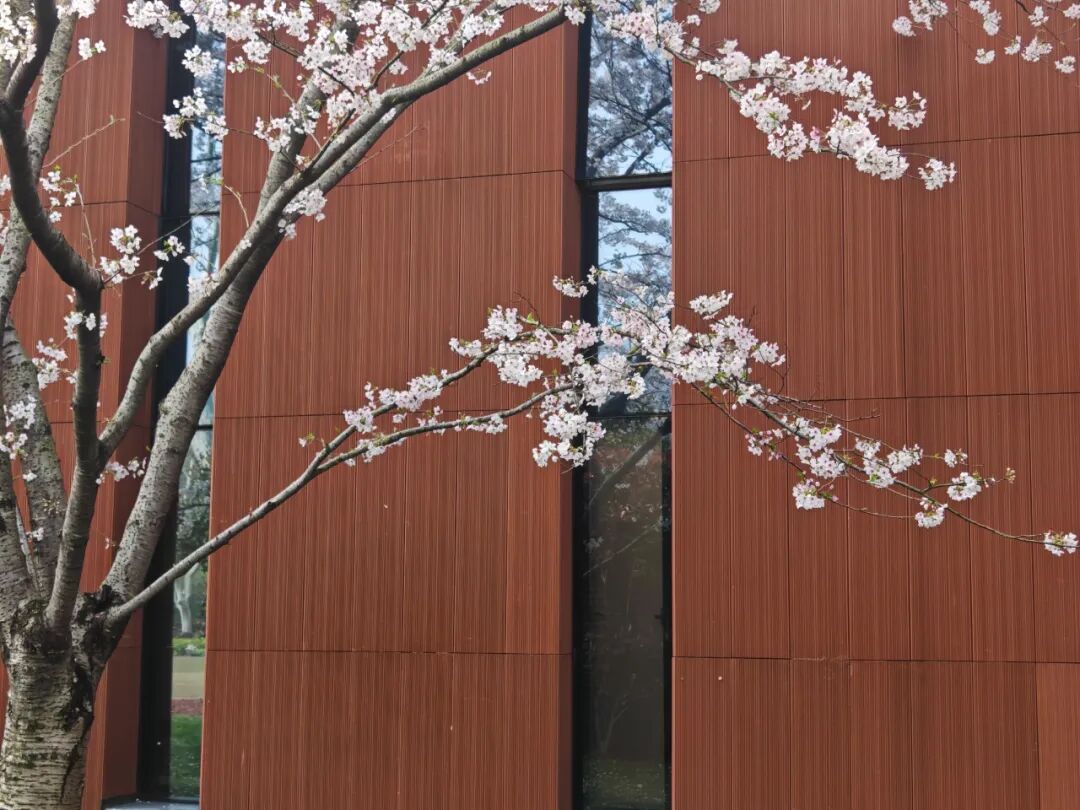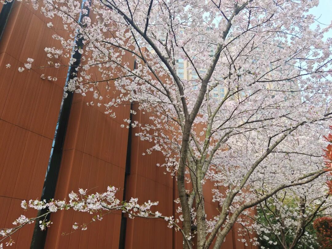 春阳暖暖地洒下,花瓣在微风中轻轻颤动,偶有几片飘落,旋舞着归于泥土。站在这花与建筑之间,只想寻一处长椅静静坐下,什么也不做,什么也不想,任凭时间缓缓流过。这份春和景明、岁月静好,大概就是春日里最奢侈也最简单的幸福。