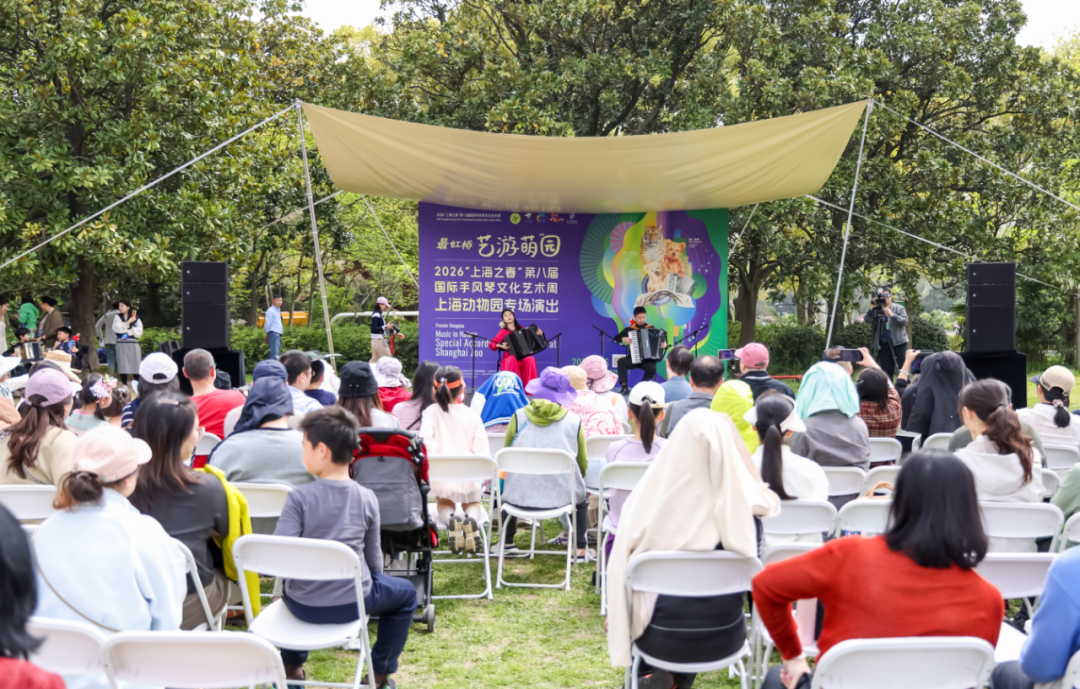 当悠扬的手风琴遇上生机勃勃的动物展区,会碰撞出怎样的奇妙体验?4月6日,“最虹桥·艺游萌园”——2026“上海之春”第八届国际手风琴文化艺术周上海动物园专场演出精彩上演,打破传统演出边界,让游客在游园的同时,邂逅一场流动在自然里的沉浸式音乐会。