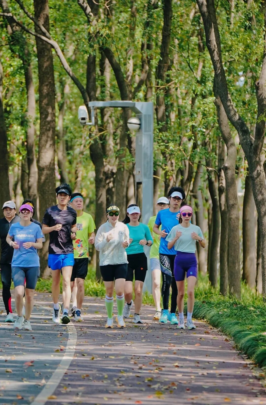 得益于临空园区内长宁外环生态绿道资源的优势,以及园区职工对运动的热爱,跑步社团的参与人数在不断增长,运动形式和频率也变得愈发丰富。社团主理人李雨成告诉记者,社团吸引了携程、博世、统一等园区企业的职工参与,每次活动的规模也从最开始的20人左右,增长到如今的30至40人。自成立以来,社团基本保持每周三次的活动频率,涵盖夜间“荧光跑”、晨跑等形式,自2025年12月起,每周六还固定开展长距离跑,单次在外环生态绿道上奔跑10公里以上的路程。大家平时还会在群里讨论参赛经验、训练心得,交流氛围浓烈。