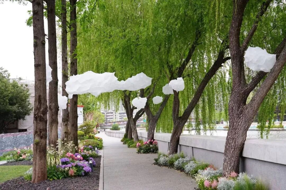 Momo精灵部落位于中山公园南区,主打灵动、创意与社交。西草坪上,情绪精灵、森语、花囡囡等5个专业搭建节点错落分布,像从泥土里冒出的彩色梦境;虹桥蒸雪、石亭周边则有“繁花融心”“爱栖花亭”等专业作品,适合爱新鲜、爱拍照的你。