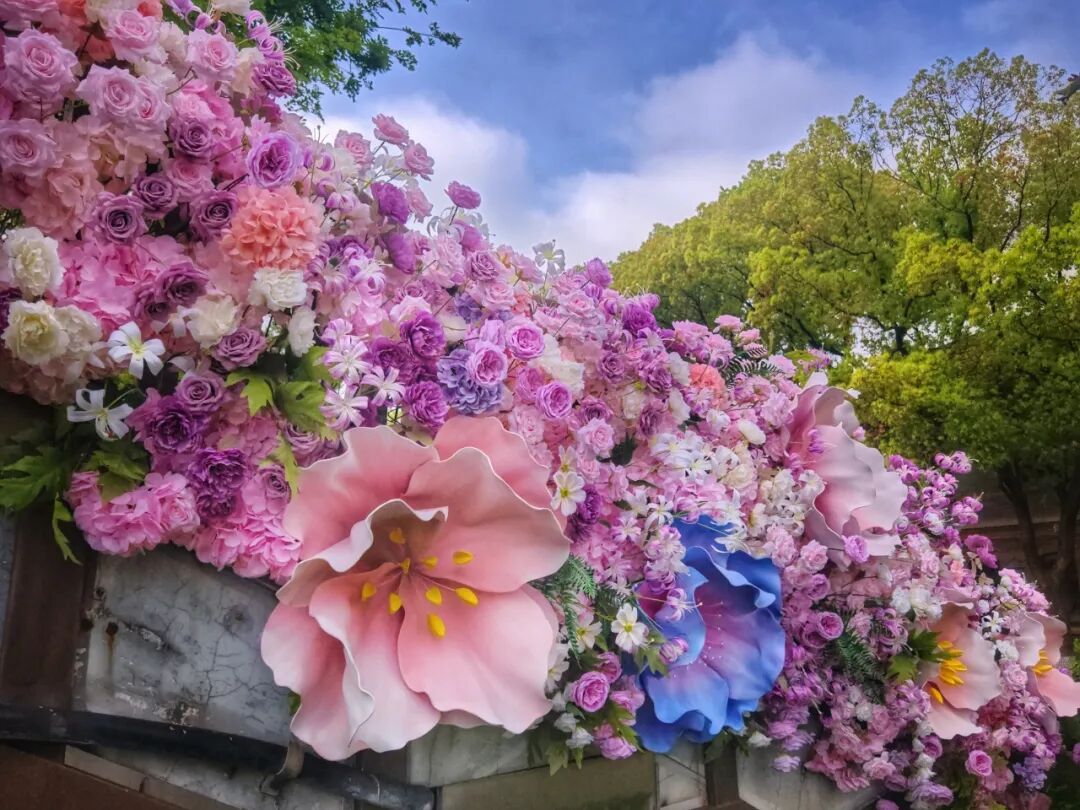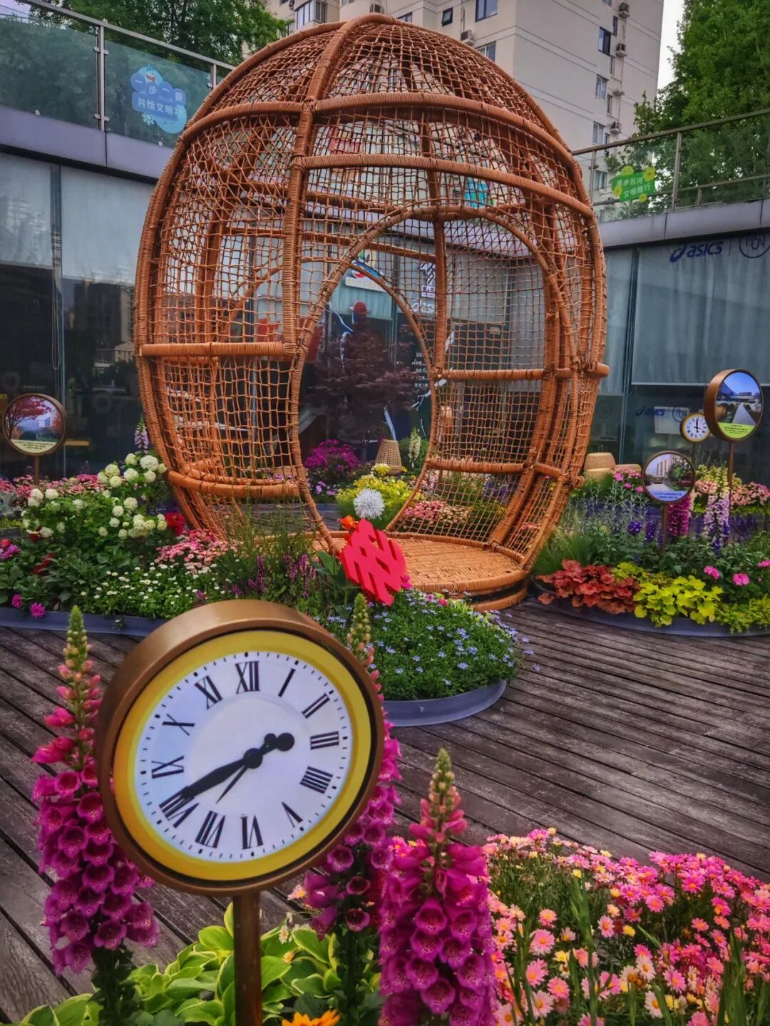 花系造物部落围绕愚园路、长宁路分布,除了有2026上海国际花卉节长宁分会场主题IP,还设置了多个花卉打卡点位,就连座椅上也开满了花,在这里走一走,逛一逛,带走的是一份独一无二的春日回忆。