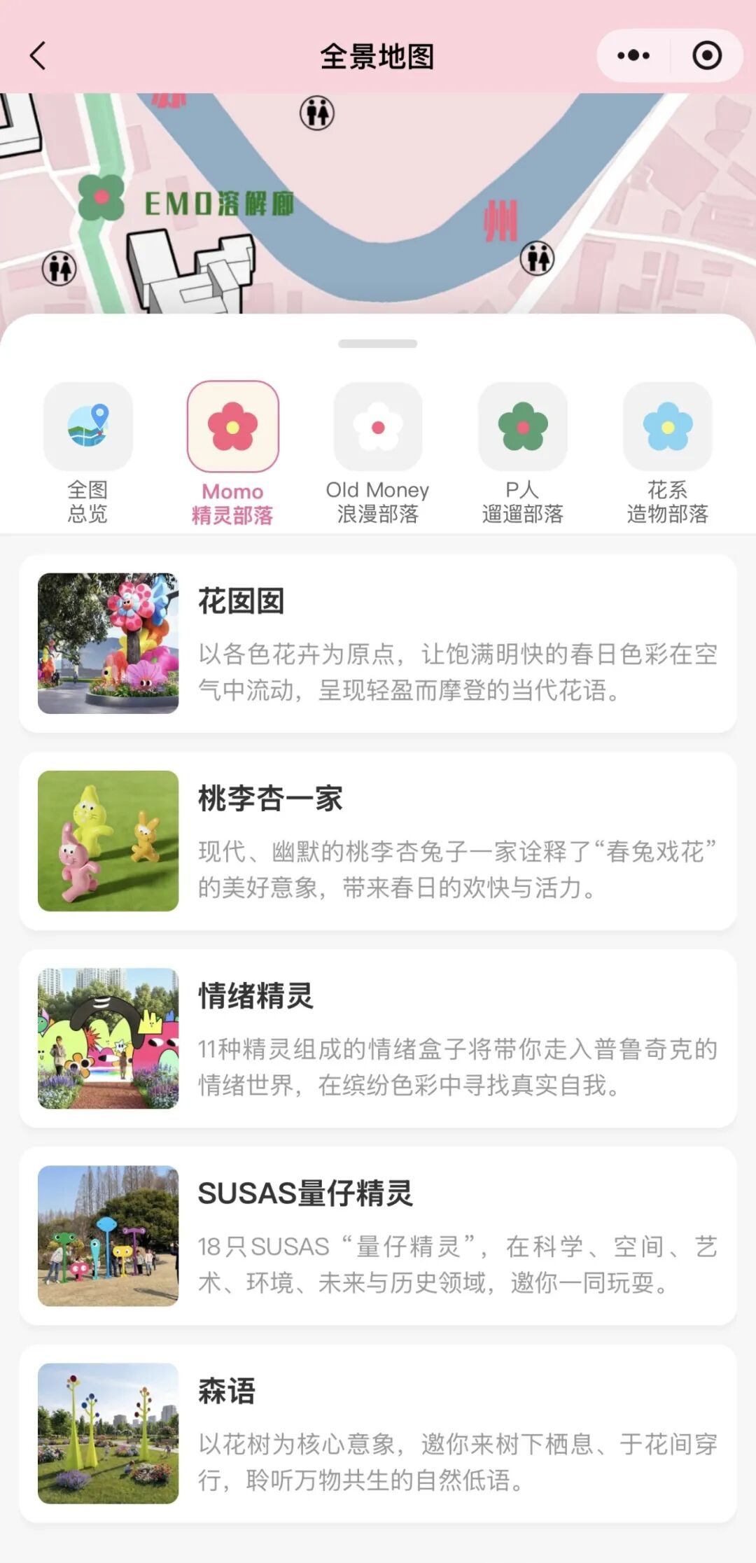 “长宁公园城”小程序依托中山公园展区,打造Momo精灵部落、Old Money浪漫部落、P人遛遛部落、花系造物部落四大特色空间,分别对应雏菊、玫瑰、蒲公英、绣球四种花语人格。市民进入小程序即可参与趣味测试,一键匹配专属游玩路线,实现精准打卡、高效逛展。