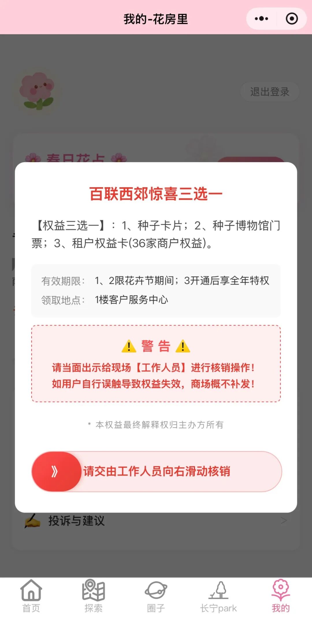 “花漾圈(圈子)”可以参与打卡活动,抽花卡赢花卉节好礼,100%获权益不空手。