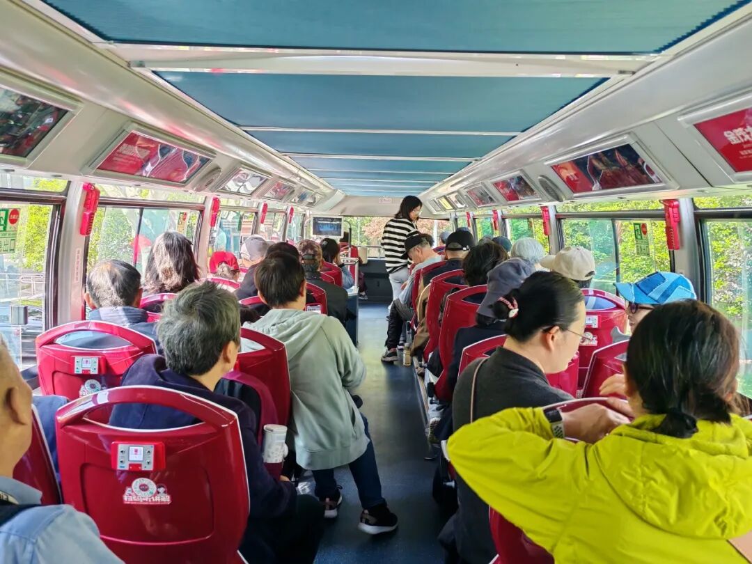 首班车64个座位全部满员,结伴出行的老人、带孩子的家庭、摄影爱好者齐聚车厢。带5岁孙女前来的市民表示,孩子一直期待坐双层巴士,今天遇上花卉节主题花车,兴奋得一早就起床等候。