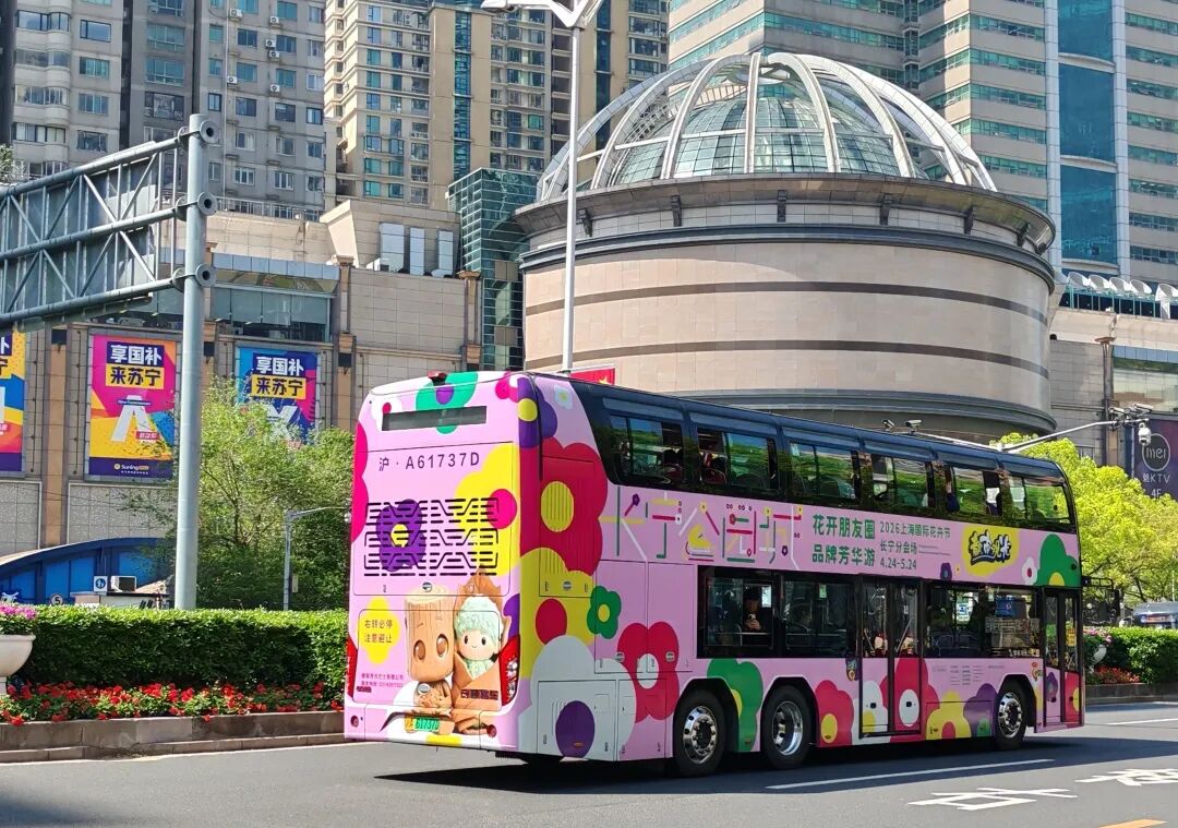 这辆通体绘满花卉图案的双层巴士,行驶在长宁街头,成为一道流动的风景线。线路途经虹桥公园、天山商圈、上海荟聚、长宁来福士、兆丰广场等站点,均对接现有公交站点,方便市民就近上下车,直达公园与商圈。全程往返约一个半小时,以中山公园为起止点,实现“赏花+逛街”一站式体验。